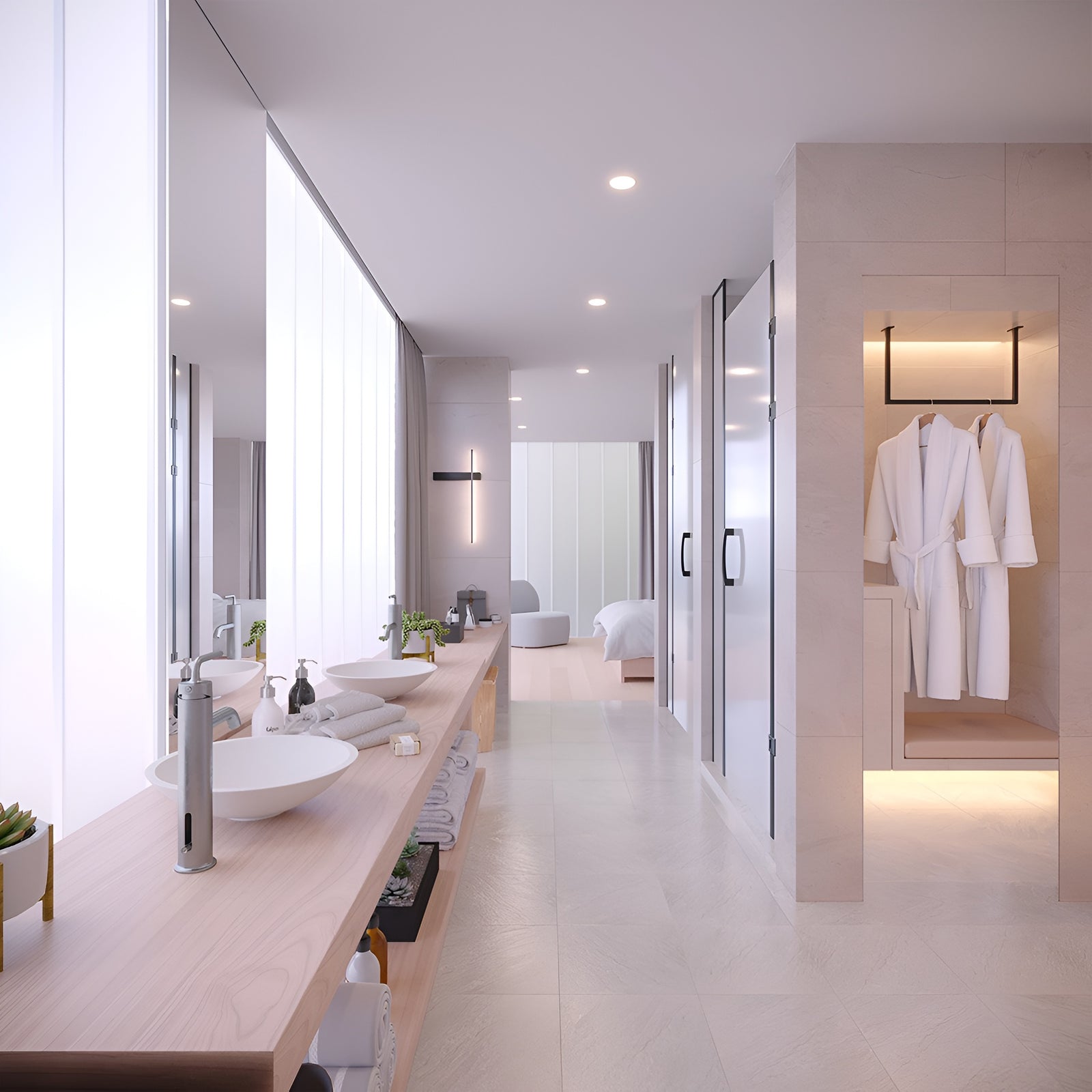 Wall-mounted sinks crafted in solid surface—sleek silhouettes, integrated storage, and refined European design.