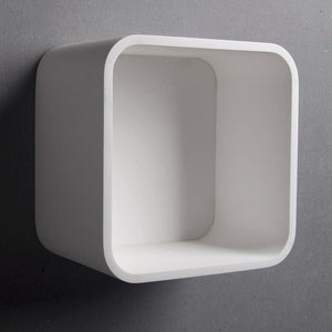 • Solid surface wall-mounted shelf in a clean matte white finish
