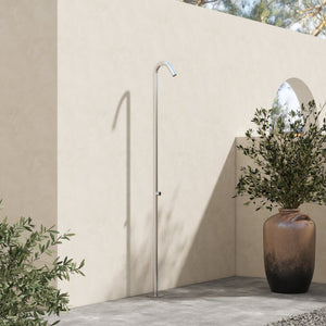 • Freestanding architectural outdoor shower system in marine-grade 316 stainless steel