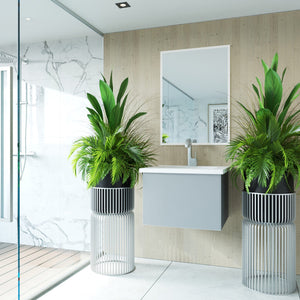 Handcrafted in Italy, the Vitri collection brings you a modern look with an elegant touch. This collection is engineered with the highest grade cabinet materials, push-to-open Blum hardware, and wrapped by beautifully frosted Nano Glass panels. LAVIVA's Nano Glass Technology makes the glass durable for everyday use and won't leave smudges or fingerprints behind. The Vitri collection's adaptive design allows you to combine multiple cabinets to create any size vanity to fit your space. When paired with LAVIVA's countertops, you can create any feel in your bathroom. The VIVA Stone Solid Surface countertops give it a sleek modern look. This premium vanity is a perfect fit for any bathroom and will become the centerpiece of your space.