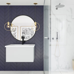 Handcrafted in Italy, the Vitri collection brings you a modern look with an elegant touch. This collection is engineered with the highest grade cabinet materials, push-to-open Blum hardware, and wrapped by beautifully frosted Nano Glass panels. LAVIVA's Nano Glass Technology makes the glass durable for everyday use and won't leave smudges or fingerprints behind. The Vitri collection's adaptive design allows you to combine multiple cabinets to create any size vanity to fit your space. When paired with LAVIVA's countertops, you can create any feel in your bathroom. The VIVA Stone Solid Surface countertops give it a sleek modern look. This premium vanity is a perfect fit for any bathroom and will become the centerpiece of your space.