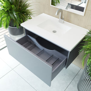 Laviva Vitri 36" Fossil Grey Bathroom Vanity with VIVA Stone Matte White Solid Surface Countertop
