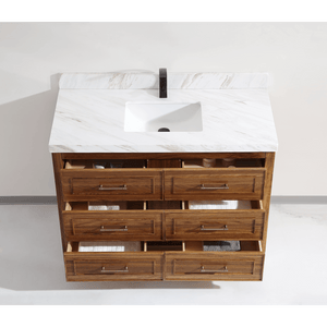 Elevate your bathroom with the Ebony Collection, a perfect blend of modern elegance and durable craftsmanship. These premium vanities feature a solid ebony wood frame for lasting stability, complemented by sleek panels finished with an ebony veneer. Choose between a striking black or crisp white natural marble countertop, each offering a refined aesthetic with exceptional durability. A white ceramic undermount sink provides a clean, sophisticated look. Soft-close drawers and a flip-down compartment offer convenient storage without sacrificing style. Designed for effortless installation, each vanity includes pre-drilled faucet holes tailored to its size. Whether you're upgrading a powder room or transforming a master bath, the Ebony Collection delivers both function and luxury in a beautifully balanced design.