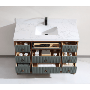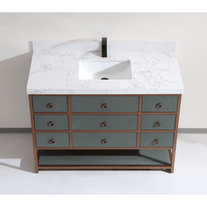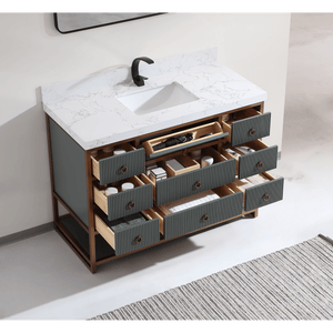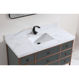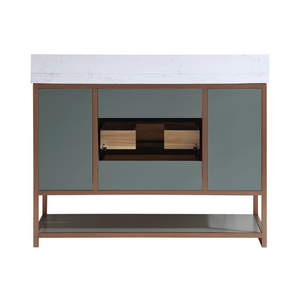 Legion Furniture 48" Vanity with Golden Brush Stainless Steel Frame and Pewter Green Finish with 2" Thick White Artificial Stone Countertop