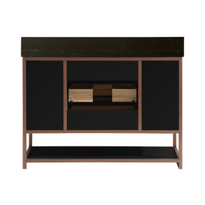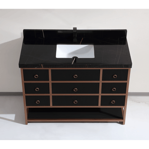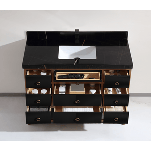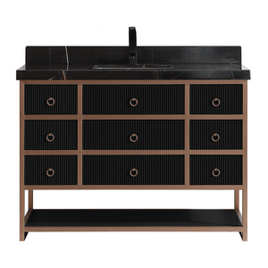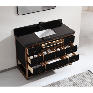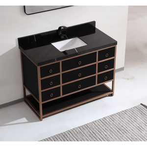 Legion Furniture 48" Vanity with Golden Brush Stainless Steel Frame and Tricorn Black Finish with 2" Thick Black Natural Marble Countertop