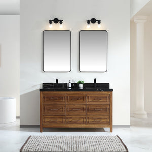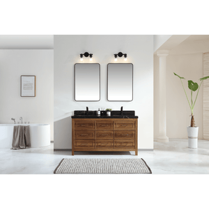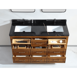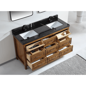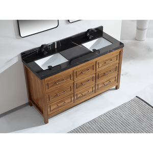 Legion Furniture 60" Ebony Double Vanity Light Finish with 2" Thick Black Natural Marble Countertop
