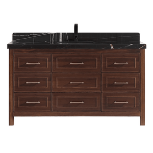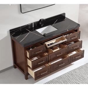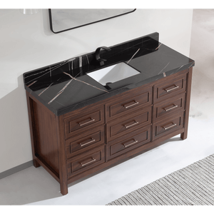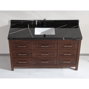 Legion Furniture 60" Ebony Single Vanity Dark Finish with 2" Thick Black Natural Marble Countertop