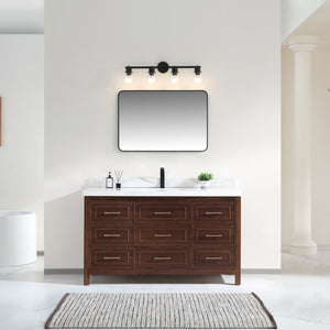 Legion Furniture 60" Ebony Single Vanity Dark Finish with 2" Thick White Natural Marble Countertop
