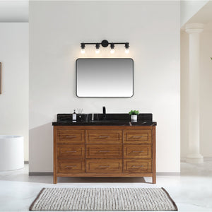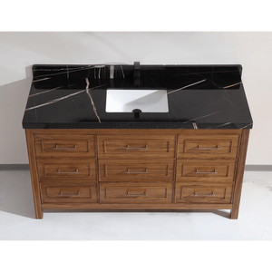 Legion Furniture 60" Ebony Single Vanity Light Finish with 2" Thick Black Natural Marble Countertop