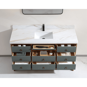 The Metal Collection combines modern elegance with durable craftsmanship, offering a perfect balance of style and function. These premium vanities feature solid oak wood frames for lasting stability, complemented by sleek stainless steel bases in a brushed golden finish. Each piece is available with either a thick natural marble countertop or an artificial stone top, allowing you to choose the best fit for your space. A white ceramic undermount sink provides a clean, sophisticated look. Soft-close drawers and flip-down compartments offer ample storage without sacrificing style. Designed for effortless installation, each vanity includes pre-drilled faucet holes tailored to its size. Whether upgrading a powder room or transforming a master bath, the Metal Collection brings sophistication and practicality to any space.