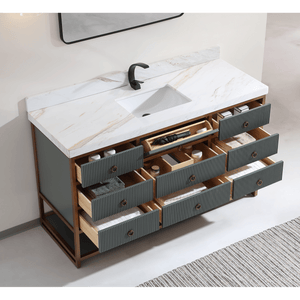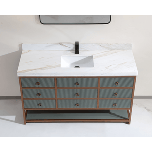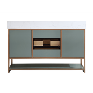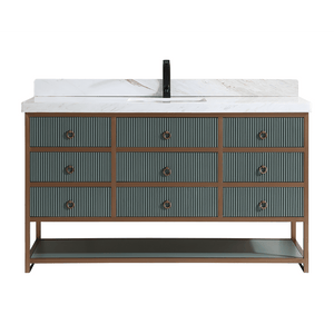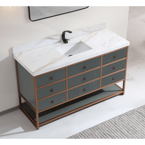 Legion Furniture 60" Single Vanity with Golden Brush Stainless Steel Frame and Pewter Green Finish with 2" Thick White Natural Marble Countertop