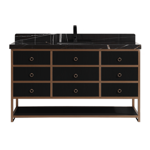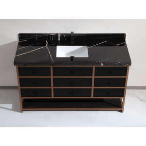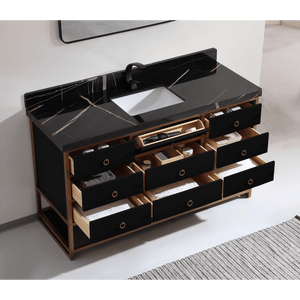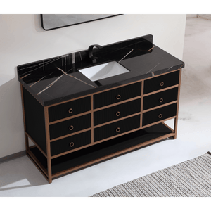 Legion Furniture 60" Single Vanity with Golden Brush Stainless Steel Frame and Tricorn Black Finish with 2" Thick Black Natural Marble Countertop