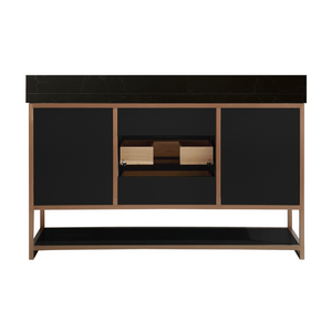 The Metal Collection combines modern elegance with durable craftsmanship, offering a perfect balance of style and function. These premium vanities feature solid oak wood frames for lasting stability, complemented by sleek stainless steel bases in a brushed golden finish. Each piece is available with either a thick natural marble countertop or an artificial stone top, allowing you to choose the best fit for your space. A white ceramic undermount sink provides a clean, sophisticated look. Soft-close drawers and flip-down compartments offer ample storage without sacrificing style. Designed for effortless installation, each vanity includes pre-drilled faucet holes tailored to its size. Whether upgrading a powder room or transforming a master bath, the Metal Collection brings sophistication and practicality to any space.