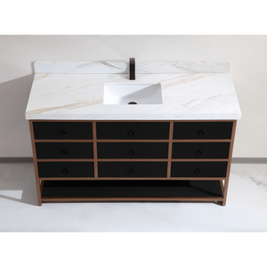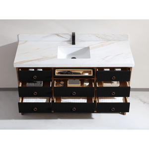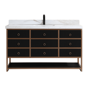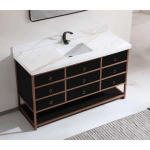 Legion Furniture 60" Single Vanity with Golden Brush Stainless Steel Frame and Tricorn Black Finish with 2' Thick White Natural Marble Countertop
