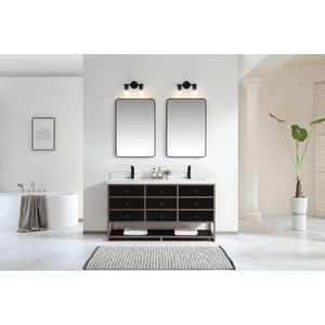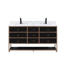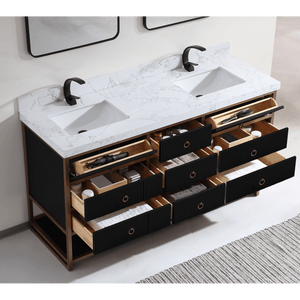 Legion Furniture 72" Double Vanity with Golden Brush Stainless Steel Frame and Tricorn Black Finish with 2' Thick White Artificial Stone Countertop