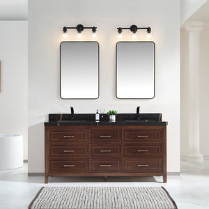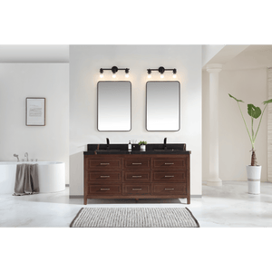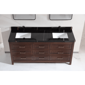 Legion Furniture 72" Ebony Double Vanity Dark Finish with 2" Thick Black Natural Marble Countertop