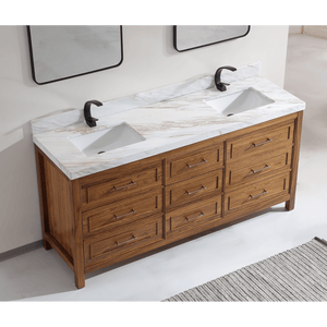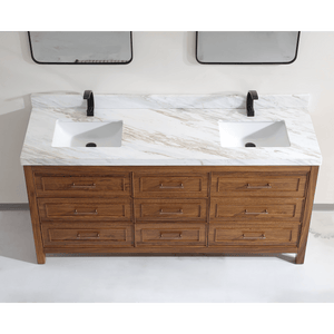 Legion Furniture 72" Ebony Double Vanity Light Finish with 2" Thick White Natural Marble Countertop