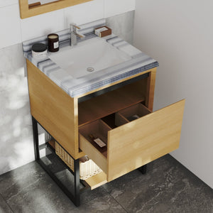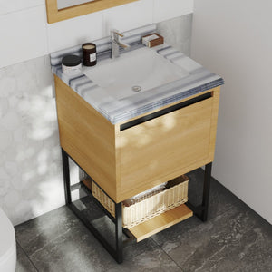 Laviva Alto 24" California White Oak Bathroom Vanity with White Stripes Marble Countertop