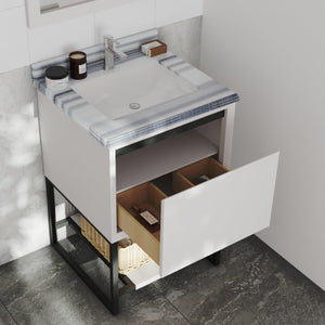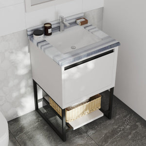 Laviva Alto 24" White Bathroom Vanity with White Stripes Marble Countertop