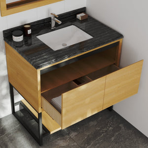 Laviva Alto 36" California White Oak Bathroom Vanity with Black Wood Marble Countertop