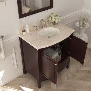 The Estella collection offers a distinctive, traditional style which equates to a classic and timeless design. This furniture style vanity has intricate lines that are simple yet sophisticated, featuring rounded edges and curves. Without sacrificing functionality, this 32” vanity has 2 doors and 1 full extension drawer with soft closing hinges and rails, so you’ll never hear the door slam. In addition, the countertop has a breath-taking double Ogee edge detail. The Estella collection is available in a selection of high-end finishes including: White, Brown, Grey, and Espresso.