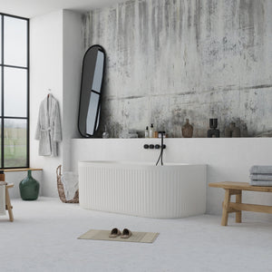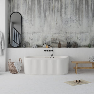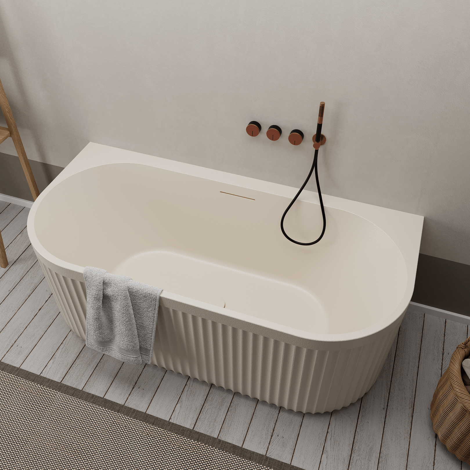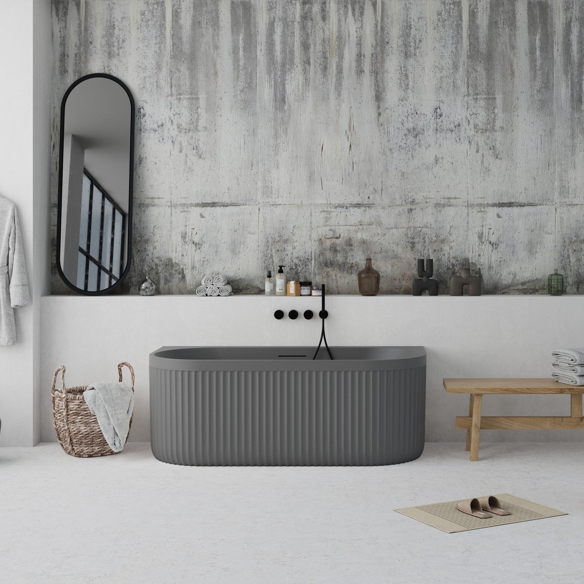 The Ideavit Archtec Oval Back-to-Wall Bathtub is crafted from Ideavit’s exclusive Rock Texture Material, an engineered composite designed to replicate the tactile depth and visual character of natural stone. Its relief-textured, ribbed exterior contrasts with a smooth interior soaking surface, creating a strong architectural presence while maintaining everyday comfort. Designed to sit flush against the wall, this back-to-wall configuration offers a refined, space-efficient alternative to freestanding installations.