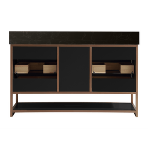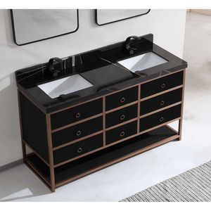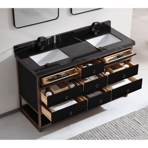 Legion Furniture 72" Double Vanity with Golden Brush Stainless Steel Frame and Tricorn Black Finish with 2" Thick Black Natural Marble Countertop