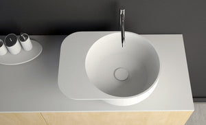 The Ideavit SolidCap 6.0 refines the series’ sculptural design with a softer, continuous rim that flows smoothly into the basin. This smaller, space-efficient model eliminates the wide perimeter shelf of larger SolidCap versions, creating a cleaner silhouette ideal for powder rooms and compact vanities. The matte solid surface delivers the same seamless, hygienic quality and refined texture found throughout the Ideavit line.
