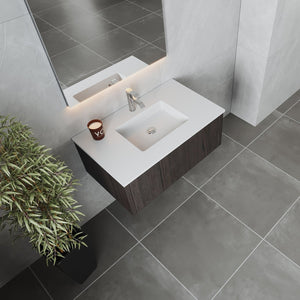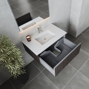 Laviva Legno 36" Carbon Oak Bathroom Vanity with Matte White VIVA Stone Solid Surface Countertop