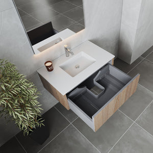 Laviva Legno 36" Weathered Grey Bathroom Vanity with Matte White VIVA Stone Solid Surface Countertop