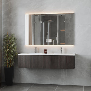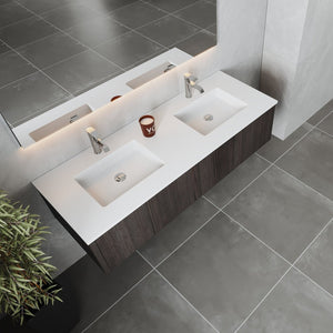 Laviva Legno 60" Carbon Oak Double Sink Bathroom Vanity with Matte White VIVA Stone Solid Surface Countertop