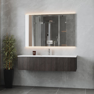 Laviva Legno 60" Carbon Oak Single Sink Bathroom Vanity with Matte White VIVA Stone Solid Surface Countertop