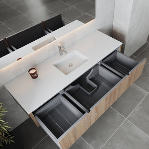 Handcrafted in Italy, the Legno collection brings you a modern look with an elegant touch. This collection is engineered with the highest grade cabinet materials, push-to-open Blum hardware, and wrapped with beautiful wood panels. The adaptive design allows you to combine multiple cabinets to create any size vanity to fit your space. When paired with LAVIVA's countertops, you can create any feel in your bathroom. The VIVA Stone Solid Surface countertops give it a sleek modern look. This premium vanity is a perfect fit for any bathroom and will become the centerpiece of your space.
