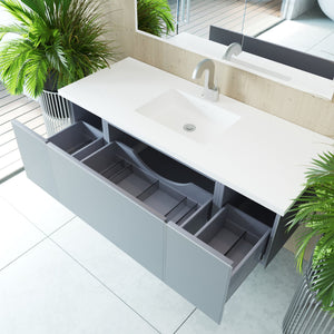 Laviva Vitri 54" Fossil Grey Bathroom Vanity with VIVA Stone Matte White Solid Surface Countertop