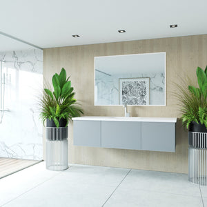 Handcrafted in Italy, the Vitri collection brings you a modern look with an elegant touch. This collection is engineered with the highest grade cabinet materials, push-to-open Blum hardware, and wrapped by beautifully frosted Nano Glass panels. LAVIVA's Nano Glass Technology makes the glass durable for everyday use and won't leave smudges or fingerprints behind. The Vitri collection's adaptive design allows you to combine multiple cabinets to create any size vanity to fit your space. When paired with LAVIVA's countertops, you can create any feel in your bathroom. The VIVA Stone Solid Surface countertops give it a sleek modern look. This premium vanity is a perfect fit for any bathroom and will become the centerpiece of your space.
