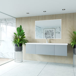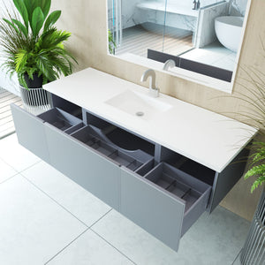 Laviva Vitri 66" Fossil Grey Single Sink Bathroom Vanity with VIVA Stone Matte White Solid Surface Countertop