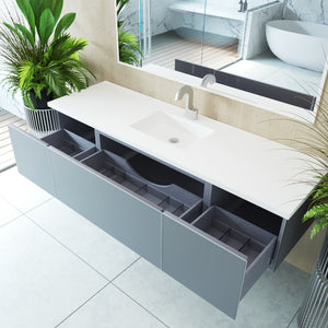 Laviva Vitri 72" Fossil Grey Single Sink Bathroom Vanity with VIVA Stone Matte White Solid Surface Countertop