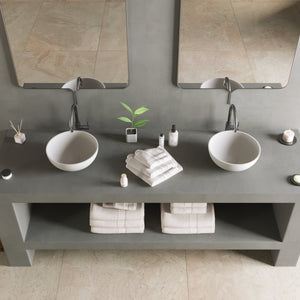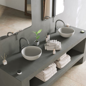 The Ideavit SolidThin XS is a sculptural round vessel sink defined by its ultra-slim ¼ in rim and soft, continuous curvature. Compact yet elegant, it embodies Ideavit’s precision craftsmanship—transforming durable solid surface into a refined minimalist form that feels both light and substantial. Perfect for smaller bathrooms or minimalist spaces where clean design takes center stage.