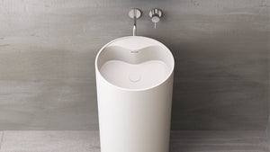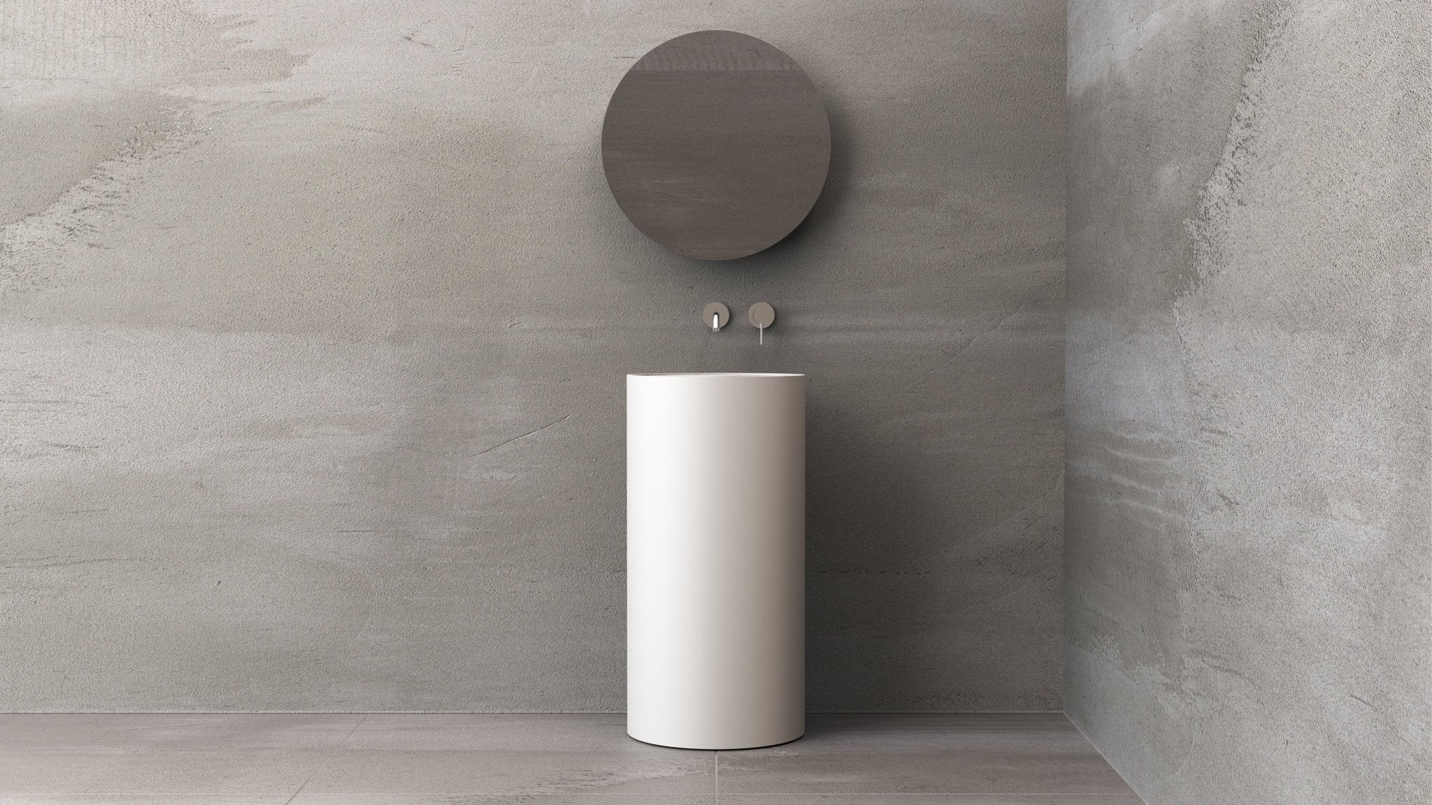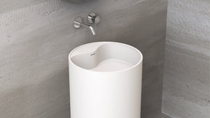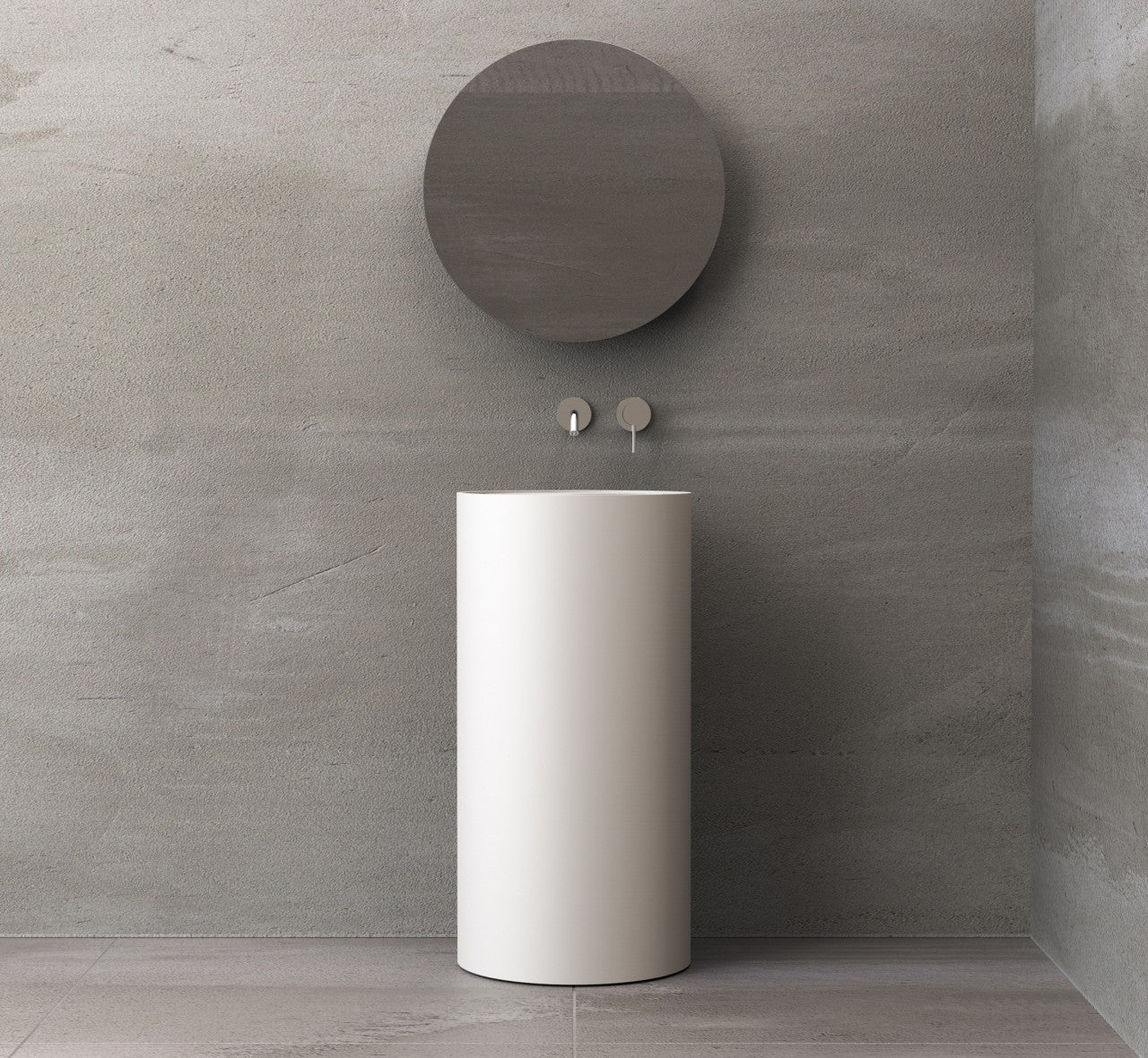 • Freestanding round pedestal sink (washbasin) in matte solid surface