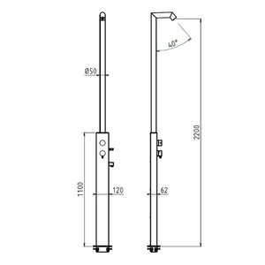 • Freestanding architectural outdoor shower system in marine-grade 316 stainless steel