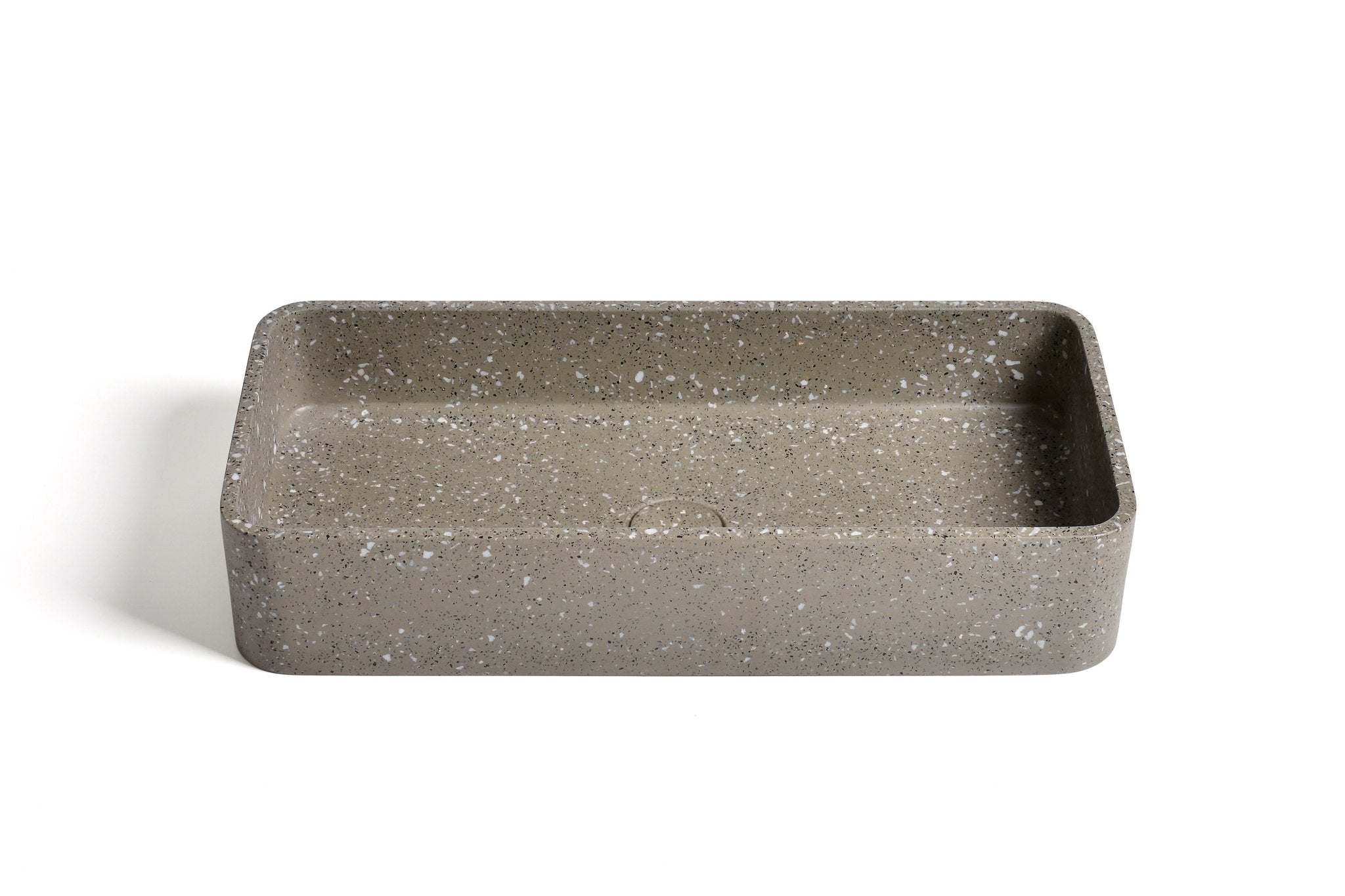 • Countertop rectangular vessel sink (washbasin) in grey terrazzo